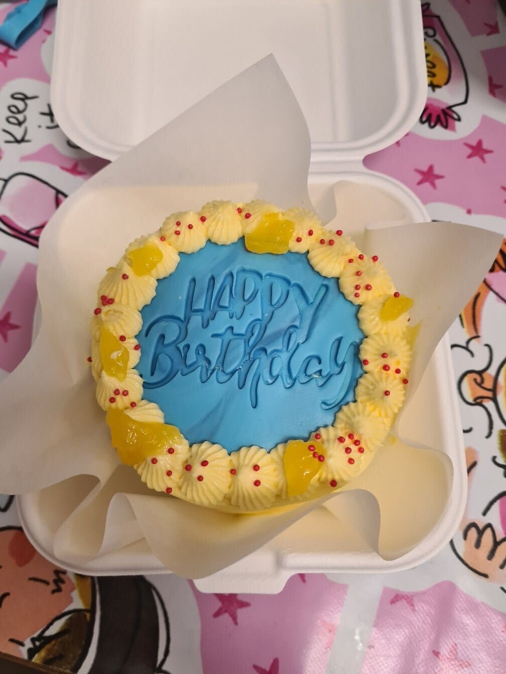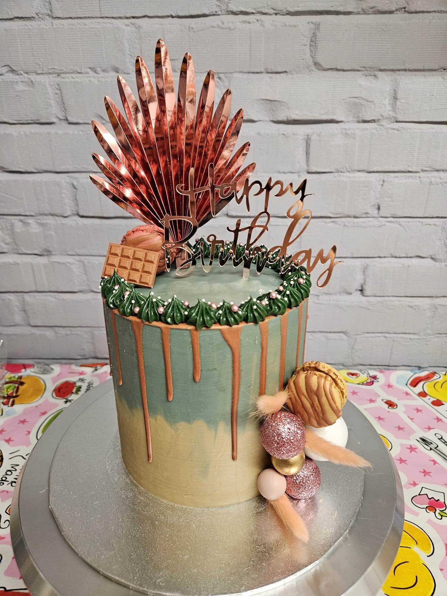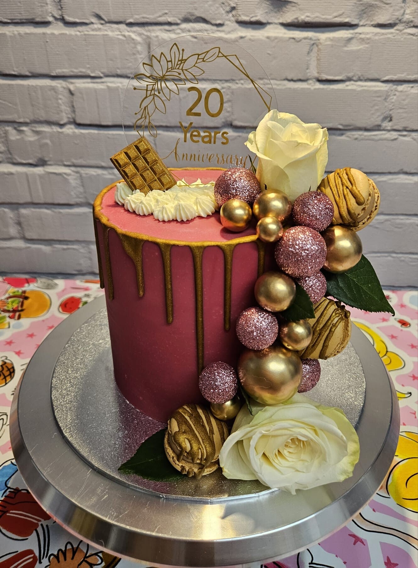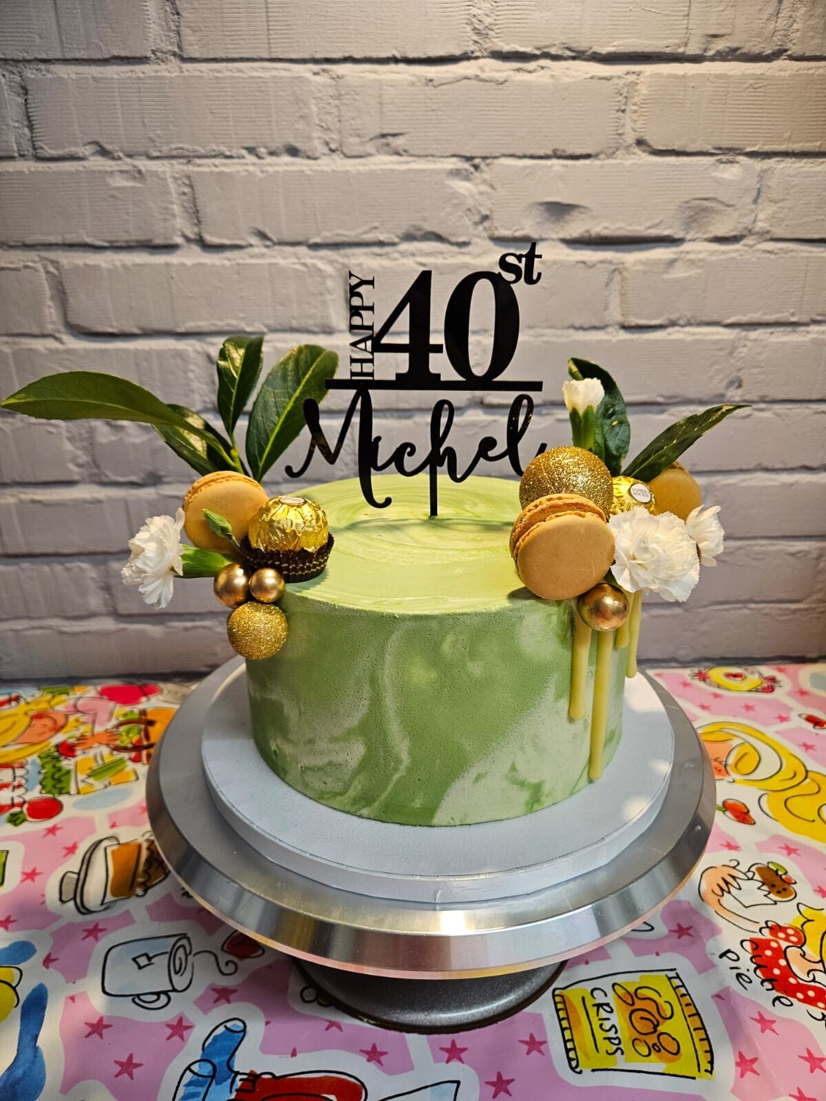 De taarten worden afgesmeerd met botercrème of chocolade ganache (tegen een meerprijs).
